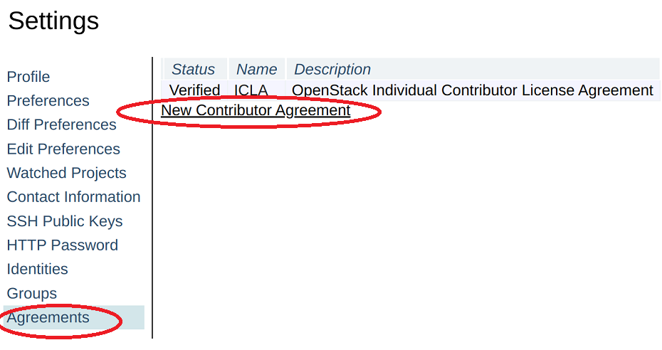 - 在 Gerrit 的 设置 中,点击“新贡献者协议”链接并签署协议。