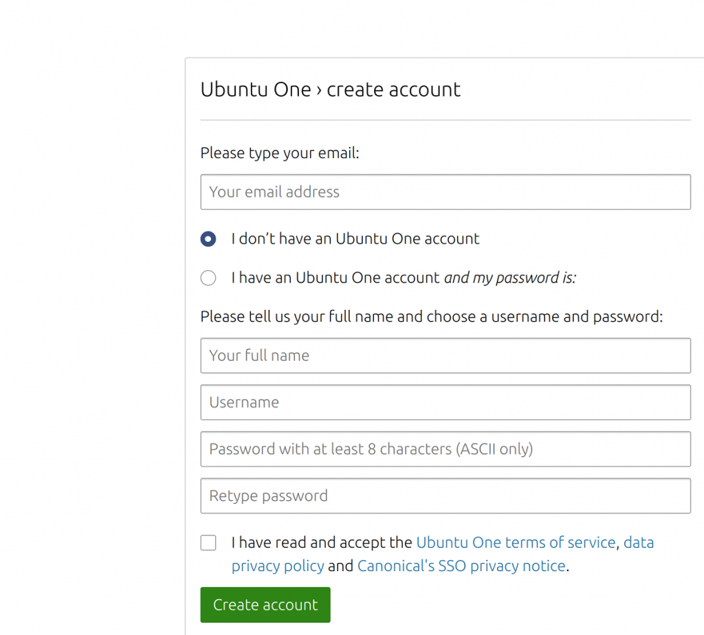 - 如果你没有 Ubuntu One 账户,点击 “我没有 Ubuntu One 账户“。