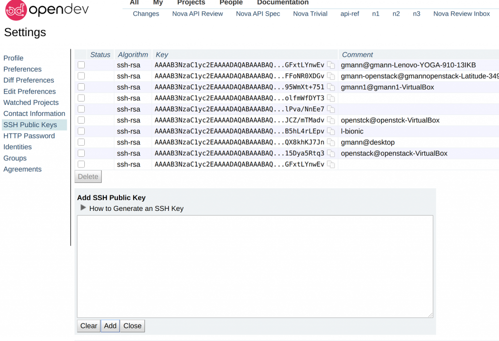 - 为了将补丁推送到 Gerrit ,我们需要一种识别自己的方式,而 ssh 密钥是一种身份验证方式。你可以从任何机器提交补丁,但你需要更新该机器的 ssh 密钥。