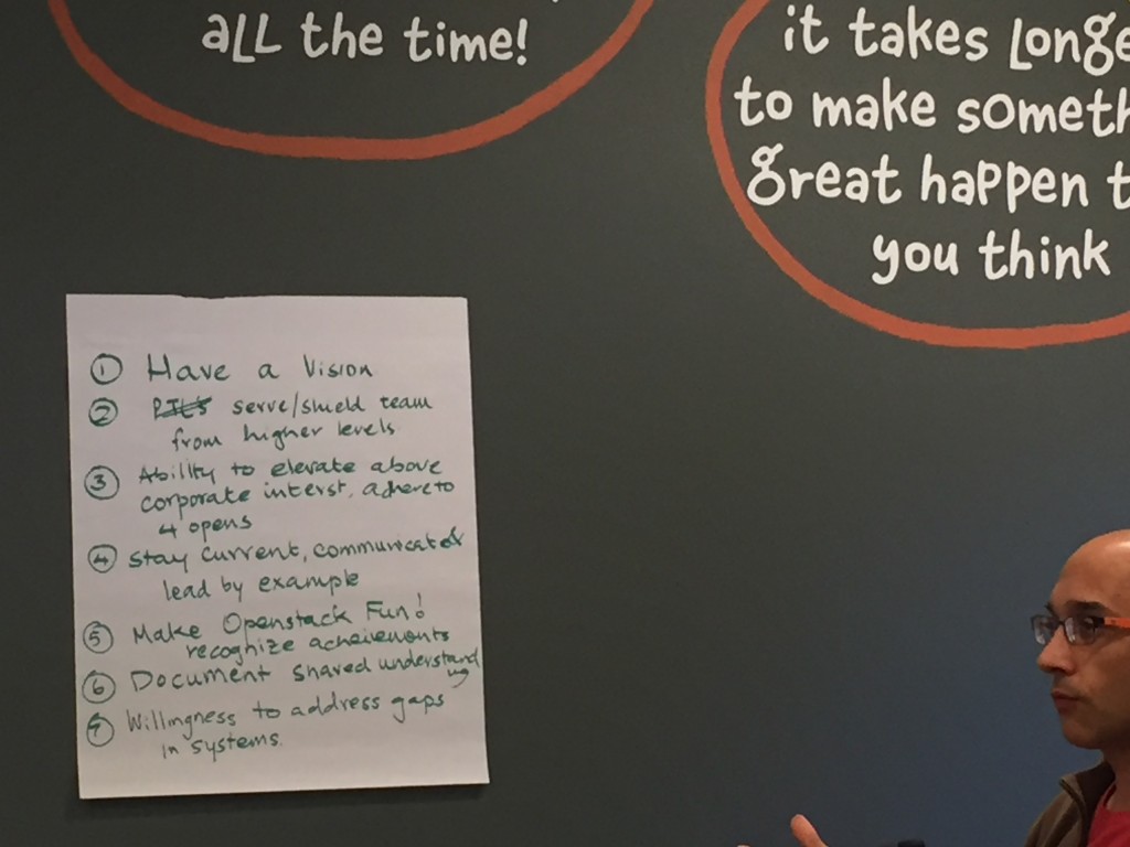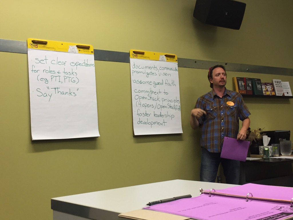 我们学习了管家精神,并将其置于OpenStack的背景下。即使我是一个喜欢文字的人,我也不得不查一下这个术语的定义。管家精神是一种“体现负责任地规划和管理资源的伦理”,它与我们作为OpenStack社区领导者需要做的事情非常吻合。该小组决定需要在培训结束后继续开展这项工作,因此成立了管家精神工作组。我们本周举行了第一次会议,并列出了许多待办事项,我们将根据情况进行筛选和优先排序。